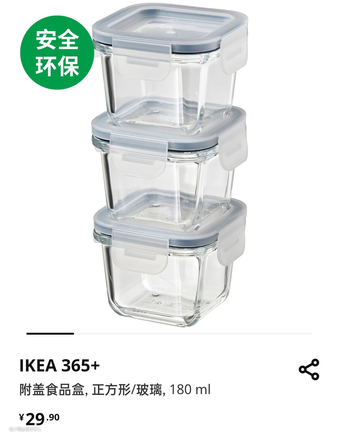IKEA 365+ 附盖食品盒, 正方形, 玻璃, 180 ml(404.449.48)