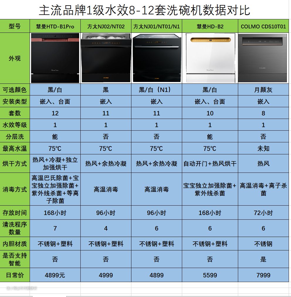 可见,8-12套嵌入式,1级水效,在5000元左右的价位区间内,主要还是慧曼和方太两个品牌之间的竞争。