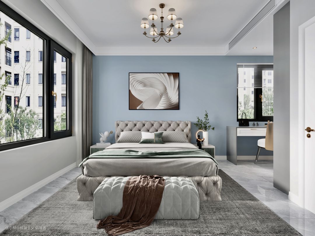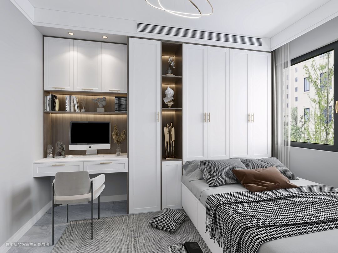 卧室 主卧延续客餐厅的简约基调,硬装以白色系为主,简单舒适不加过多装饰。营造出一种简约 耐看的空间格调。