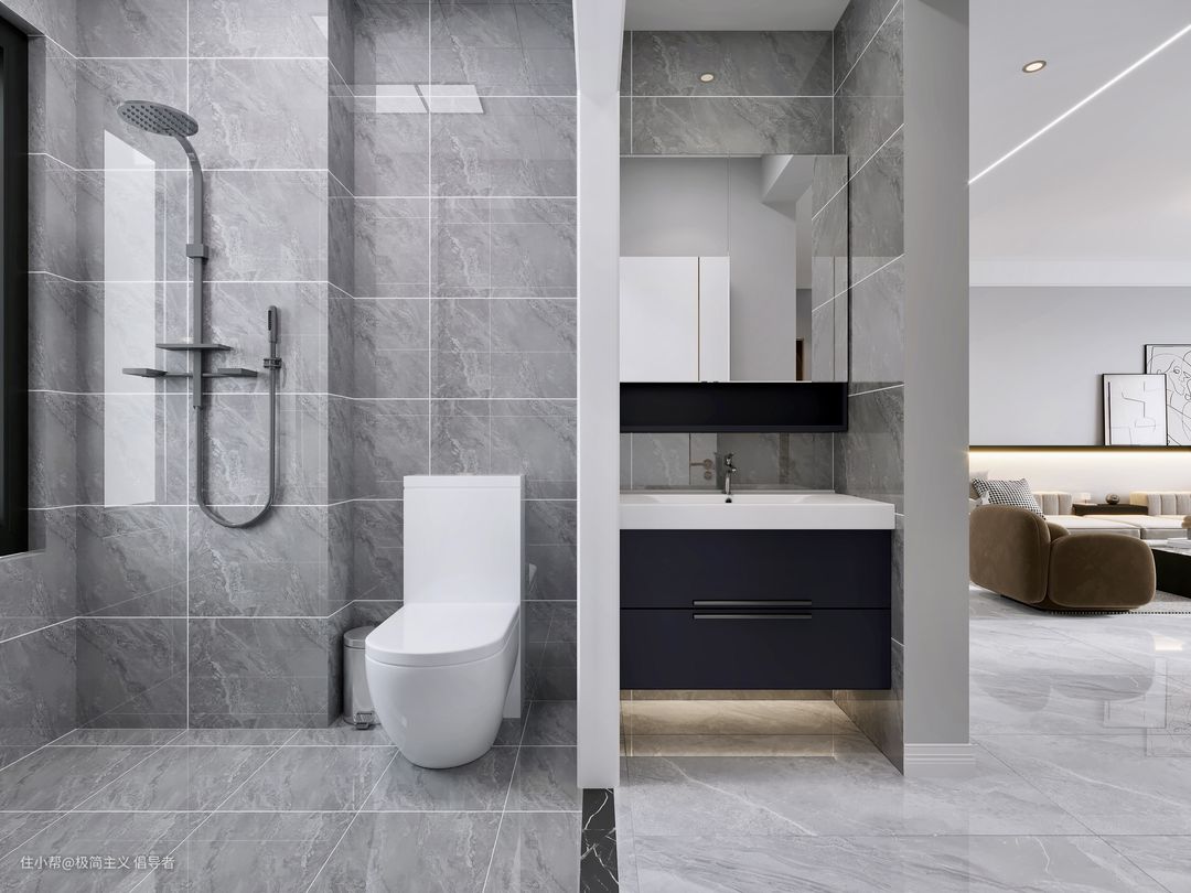 卫生间干湿分离,灰色系瓷砖,干净大方。