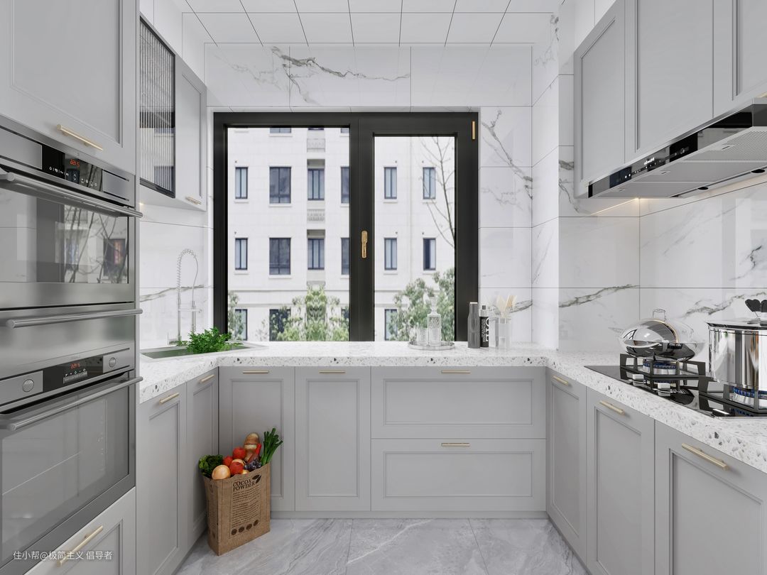 厨房 U型设计的厨房,利落的线条构成合理的动线走向。厨房整体呈灰色调,时尚大气,上下双层的柜体,带来充足的收纳空间。