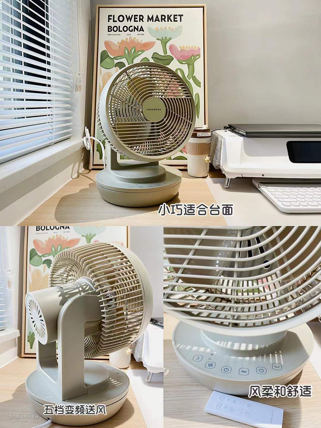 自用心得:柠檬绿挺复古的,但家里直男说不喜欢这个颜色。风扇不大挺轻巧,适合放台面,卧室空间有限,我主要买来放桌面使用,睡觉可开来调节空气。五档变频风速,风吹得也挺柔和的。我喜欢它按钮方便,并配有远程遥控器。