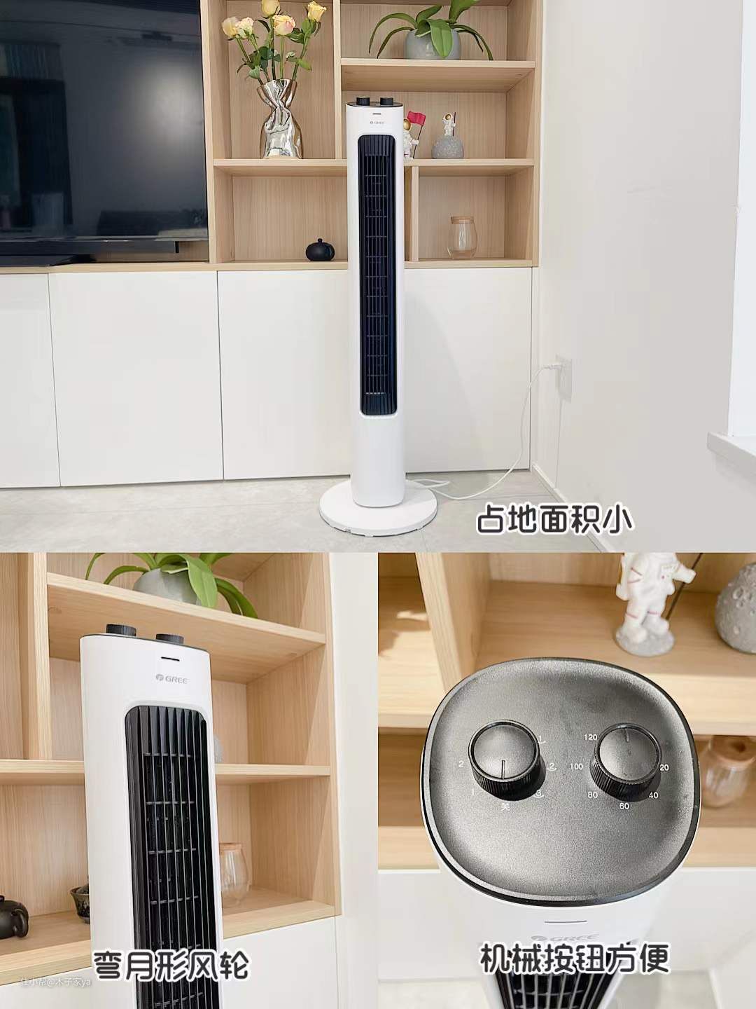 自用心得:朋友推荐给我的,看颜值是很高大上,价格也不贵。长30cm,高104cm,占地面积小很适合放在客厅用,弯月形错位风轮,88cm高出风口,可80°摇头。吹出的风还是挺大,三档风可调节,可左右摇头或定住。