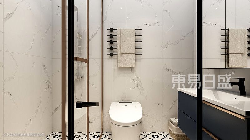 卫生间改变了门洞位置,增加了一面推拉门,使卫生间区分干湿区域,让卫生间可以干净、清洁,更加合理化的卫浴空间。