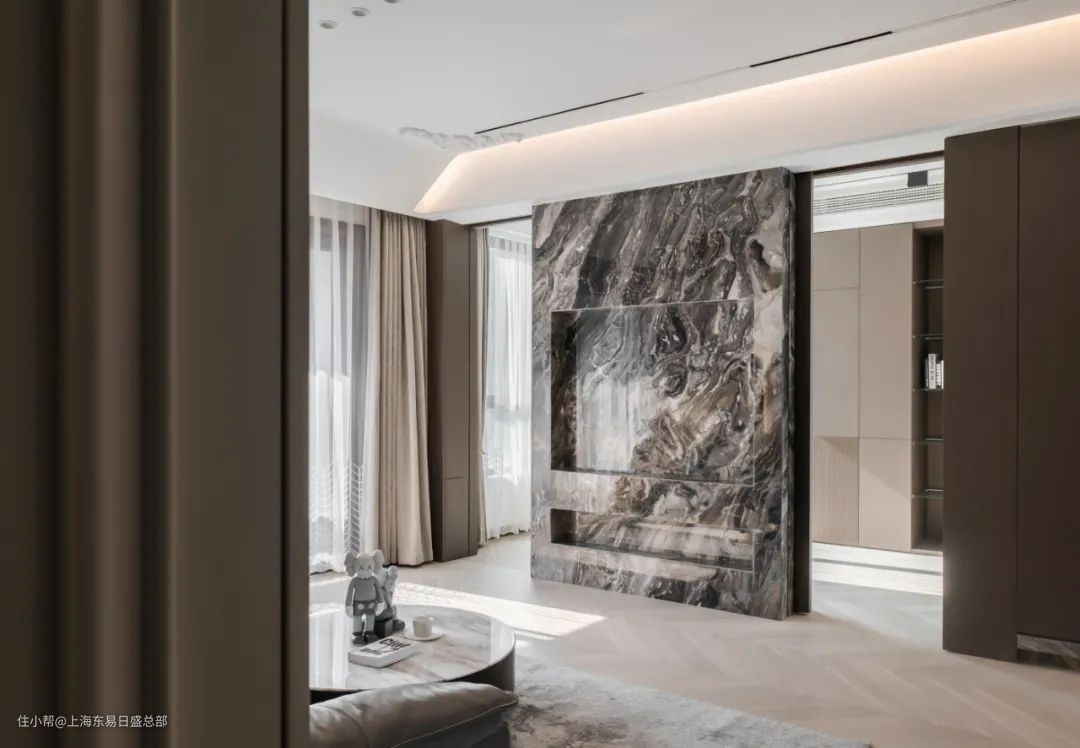 解释过隐形床之后,其优势就显而易见了,平时我们可以将其收纳在柜体中,不会占用过多的空间,这样不仅视觉上更加通透敞亮,还能够与预留出足够的空间做休闲或者办公使用。