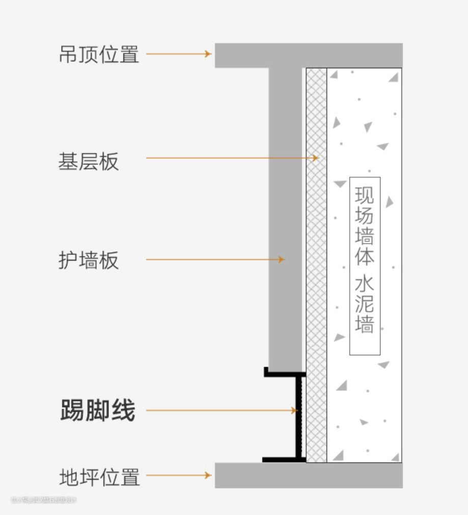这种踢脚线对墙体要求较高,不允许墙面又太大误差,一般在1-2mm范围内,虽然这种好看,又经久耐用,但是施工起来较难一点。高度多为4-8cm。