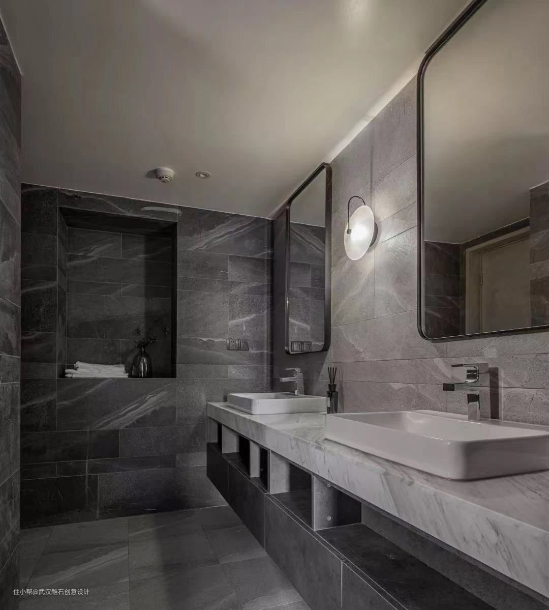 浴缸边的壁龛横向放置,卫生间淋浴的纵向放置2-3层,离地高度为900-1000mm,壁龛总高度多为900-1200mm,带暗藏式LED灯带,记得要防水硅胶的灯带。