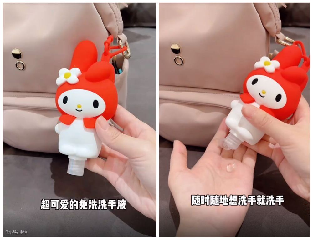 其次是这种免洗洗手液,咱们大家出去玩的时候,也经常遇到户外用水不便,想要洗手却找不到地方的情况,但在包包或钥匙上挂上一个这种免洗洗手液,就能随时随地为手消毒啦~