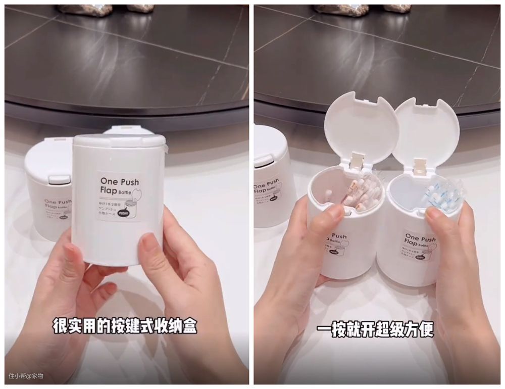 这种按键开盖的收纳盒小巧精致,用它来收纳牙签、棉签,或者一些生活中的零碎小物,都能起到不错的保存保管作用,而且价格也不贵,所以推荐给大家。