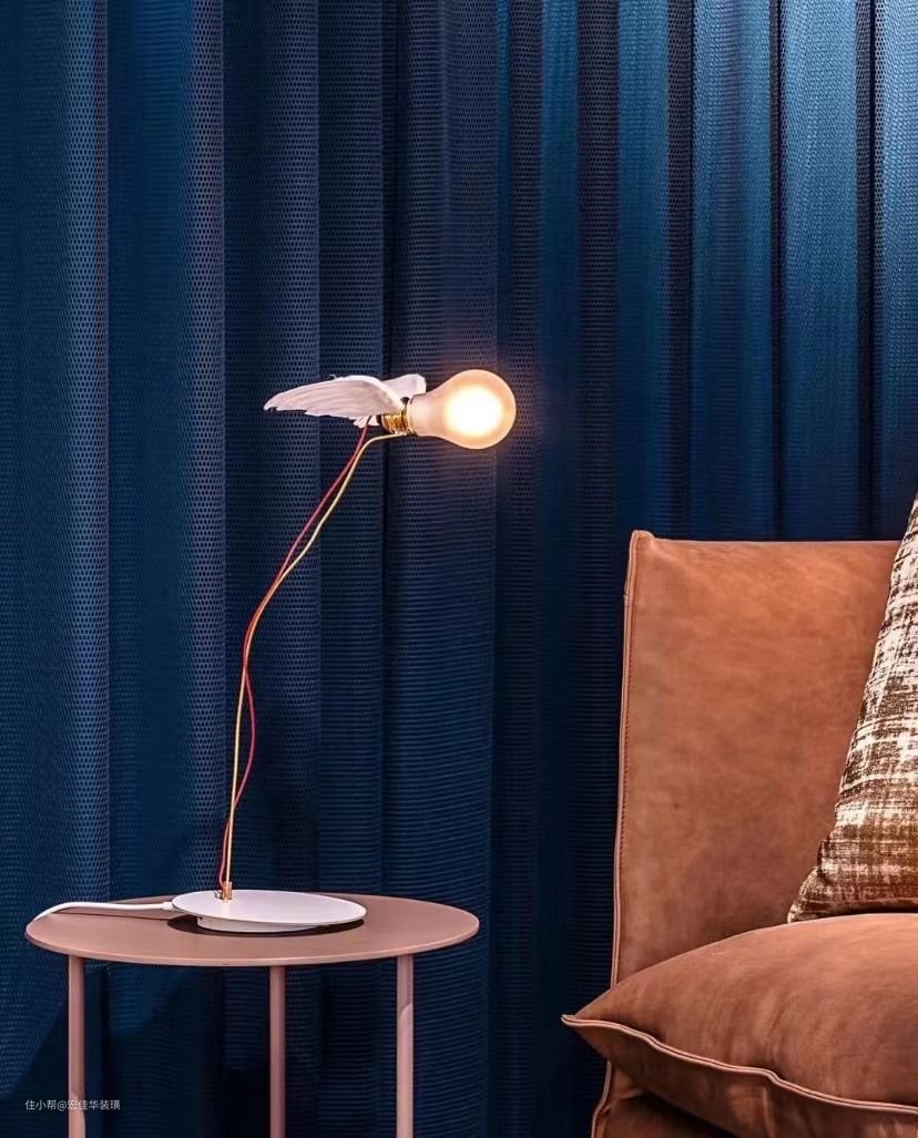 Lucellino光之翼 这款灯是“灯光诗人”德国著名灯具设计师IngoMaurer所设计的。这个带着天使羽翼的灯泡,就像一个个发光的小天使在空中漫舞,异常可爱。充满了动感之美。 IngoMaurer说:光可以是感性的,舒适的,甚至是可以说是危险的。它超越了科学或自然,甚至超越了艺术。它和生命本身一样强大。这句话也深深应用于他的设计中。