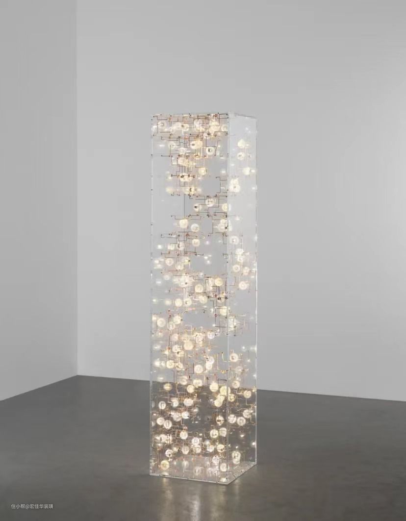 GWEILO艺术灯饰是建筑工作室PARTISANS设计的。每盏Gweilo 灯都是通过将蚀刻光学级亚克力板加热,然后由手艺娴熟的师傅手工塑形而成,冷却后在边缘装上镶嵌着LED的金属条,光在蚀刻物上扩散,成就了这一款透明的发光体。光谱件像光线本身一样折叠和弯曲,优雅地勾勒出空间,营造出一种空灵的氛围。也被称作漂浮的灵魂。既是灯具也是艺术品。