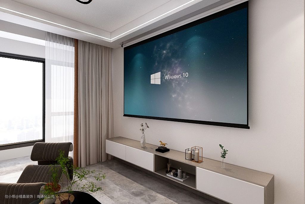 【客厅】现代简约风的客厅空间,整体硬装简洁舒适为主,放弃电视,选择更便捷的投影仪,悬挂式的电视柜设计,打扫起来更方便。