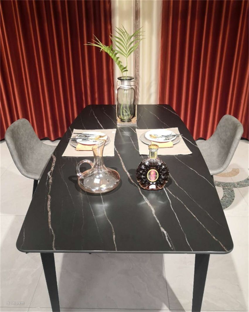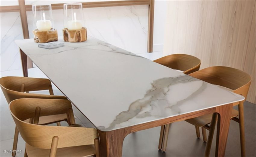 虽然名字听起来很高大上,但它本质上就是大规格瓷砖。只不过它在生产中多加入了氧化铝,提高了材质的硬度和强度,整体工艺比瓷砖更好罢了。也正因此,岩板才被广泛应用到各种家具中,岩板餐桌就是其中之一。