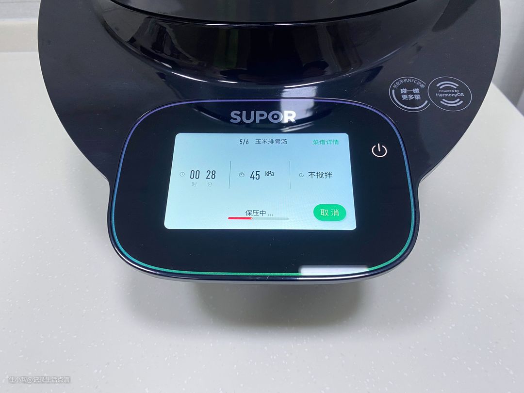 菜谱引导中设定的加热程序为45分钟,压力值为45kPa,然后你就可以干其他事情去了,坐享美食即可。