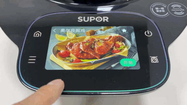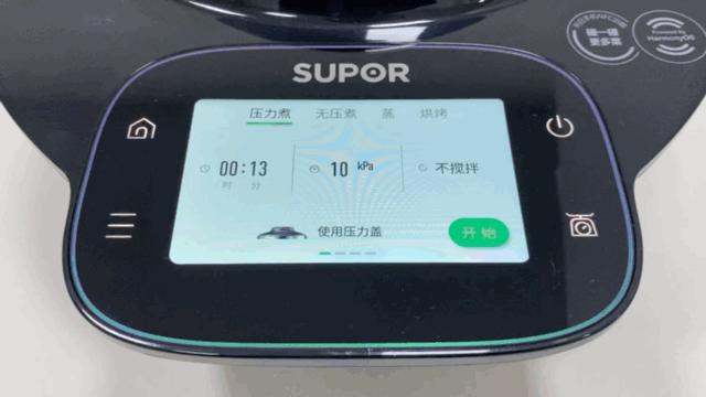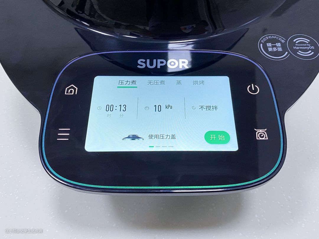 小C主厨机可以和手机互联,支持NFC的手机只要碰一下主机上面的标识部位就可以快速下载并连接苏泊尔App,同时还支持华为HarmonyOS应用。