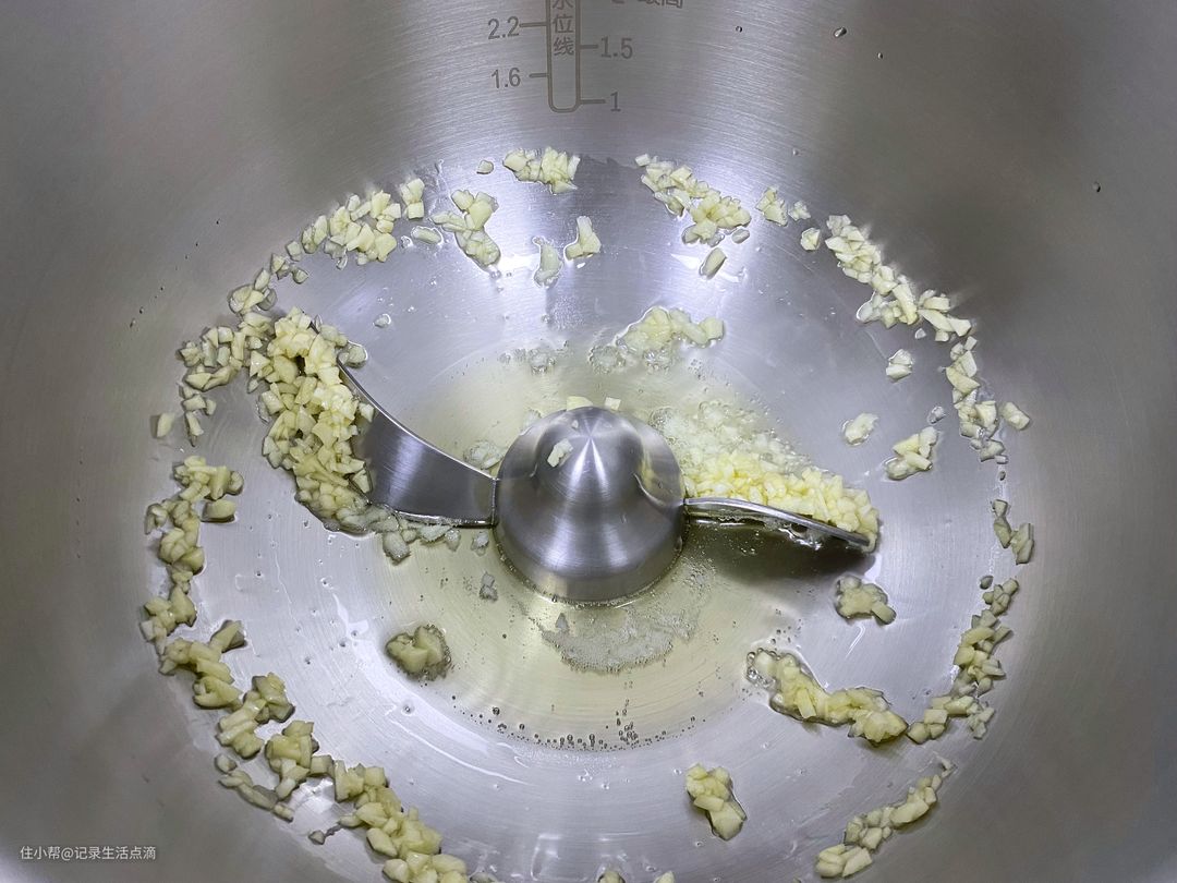 先倒入20g食用油,再把切好的蒜末一并倒入,开始大火爆香。