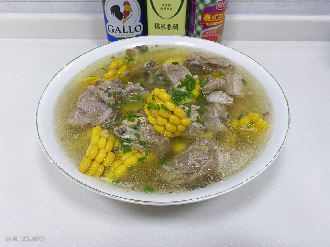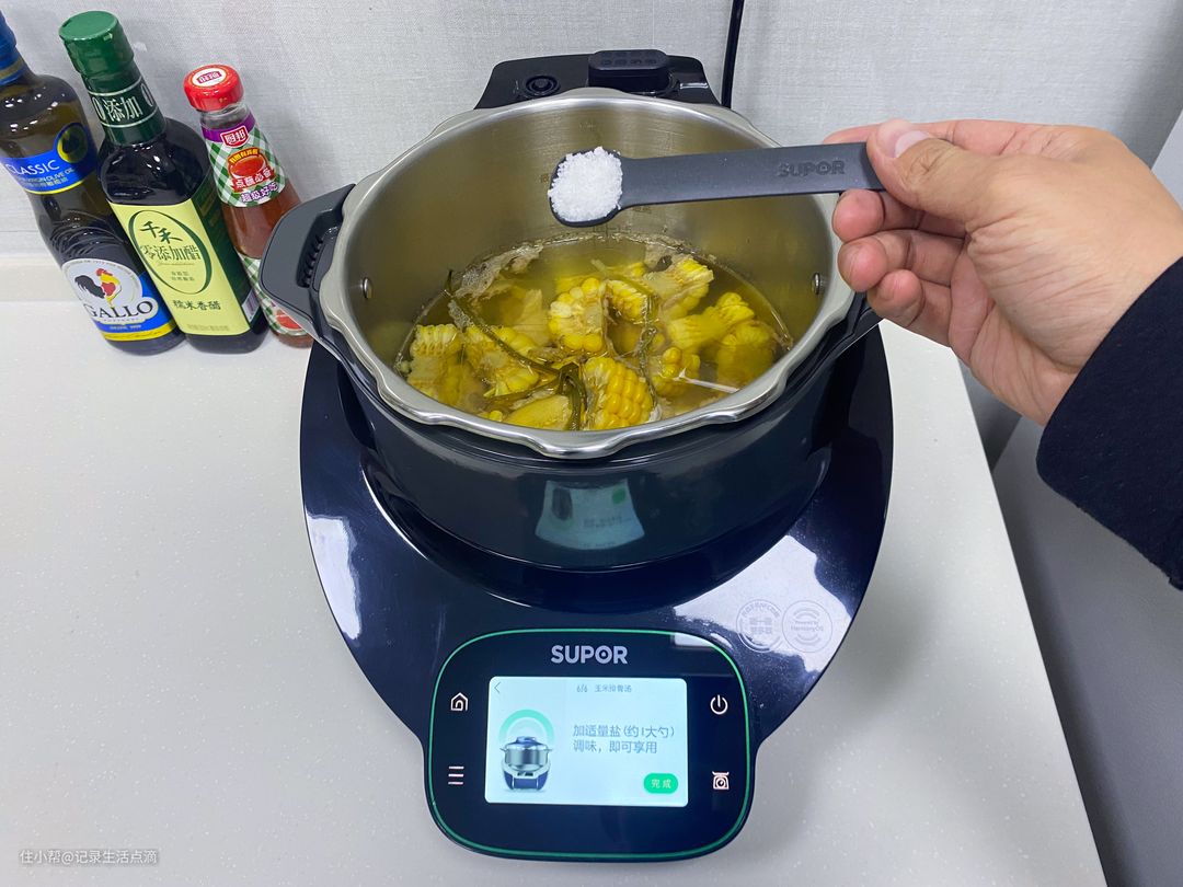 最后装盘撒上葱花,好喝的玉米排骨汤就做好了,有了小C主厨机整个烹饪过程真的太简单了,只要按照菜谱指引按部就班就可以了。45kPa压力下煮的排骨已经比较烂了,骨头都能咬碎,如果你不喜欢煮太熟的话,压力值可以适当调小点。
