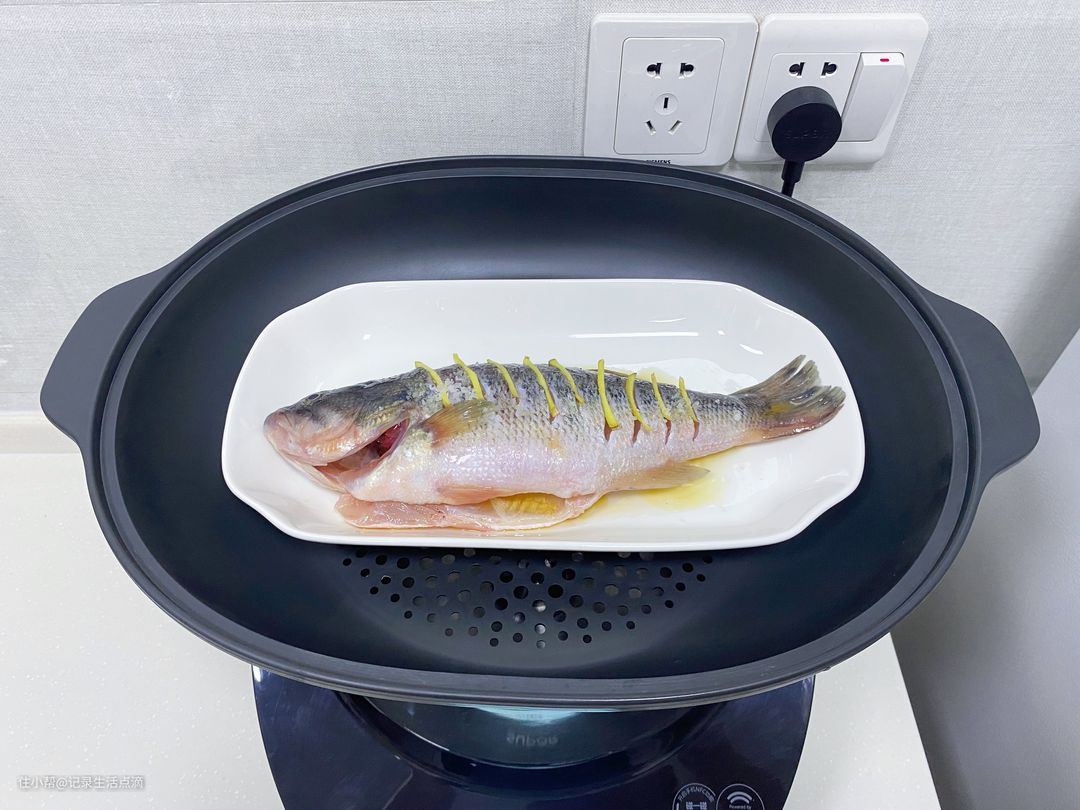 腌制好就可以放入蒸笼了,蒸笼足够大,蒸鱼妥妥的,即使鱼盘再大一号都没问题。