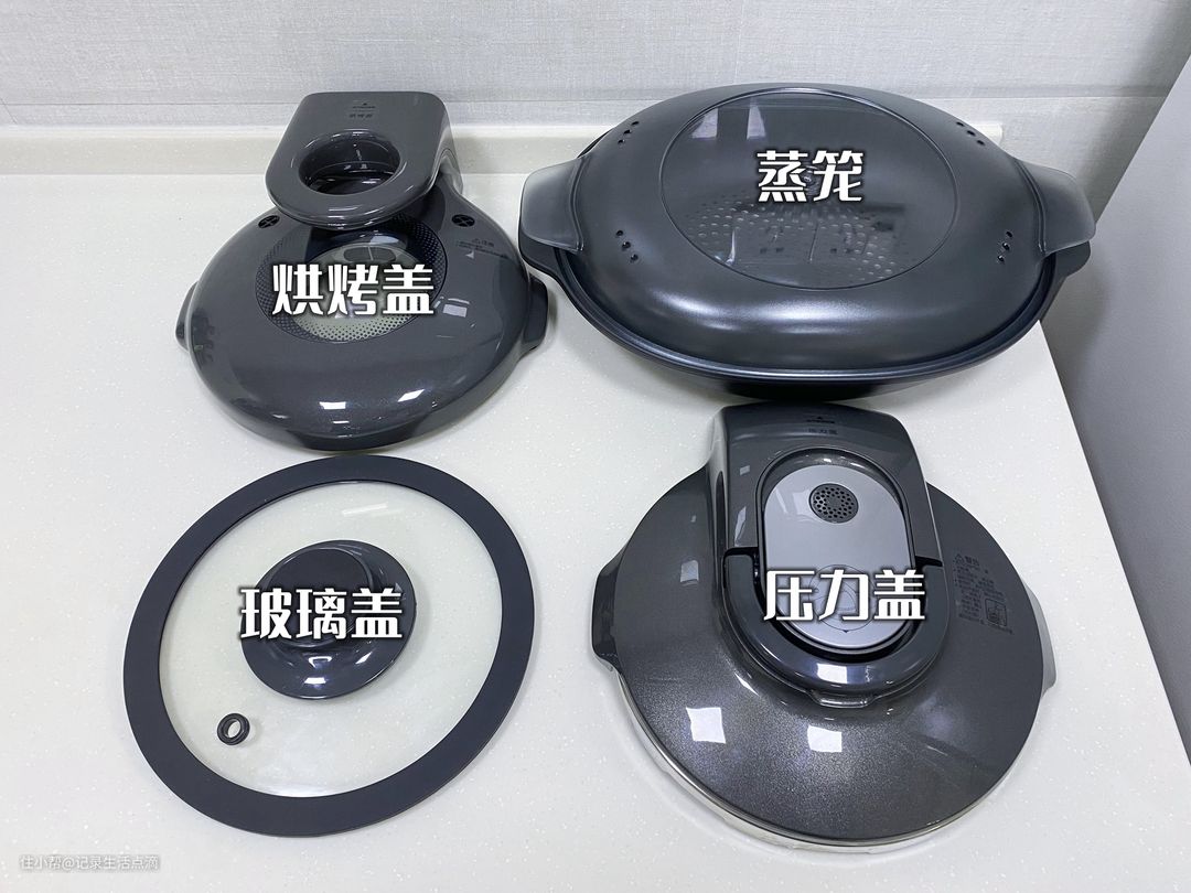 与四个锅盖相匹配的有压力煮、无压煮、蒸、烘烤四个烹饪模式。