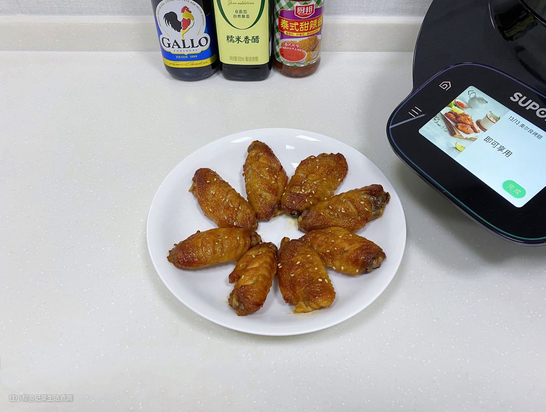 一道美味的奥尔良烤翅就这样做好了,烘烤的火候控制得恰到好处,味道一点都不输肯德基老爷爷家的,我感觉用小C主厨机做的烤翅比之前用空气炸锅做的更好吃,也许奥秘就在于火候控制上吧。