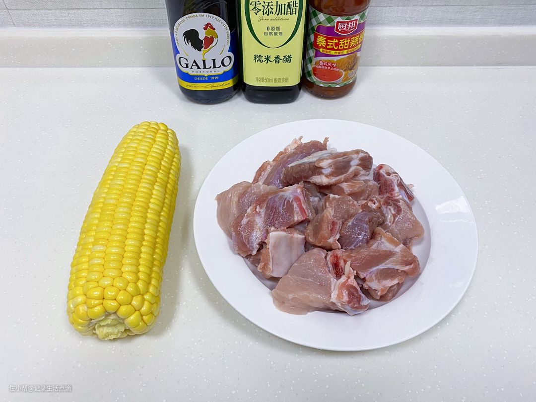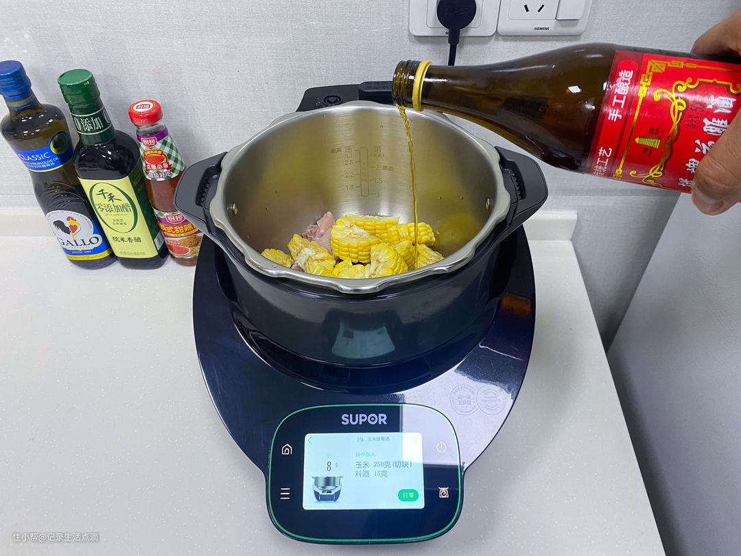 接下来做一个玉米排骨汤,之前我爸妈家经常做这道菜,都是用高压锅煮的,今天我就用小C主厨机试试。按照菜谱的智能引导准备约350g排骨,还有一根玉米,其他再准备料酒、葱、姜等调料。