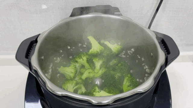 给大家展示下锅内的状况,西兰花会随着搅拌刀片的旋转而不断翻炒。