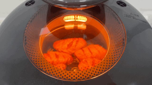 透过烘烤盖中间的玻璃窗可以看到锅内的鸡翅正在享受360°无死角的烘烤,美味似乎已经在招手了。