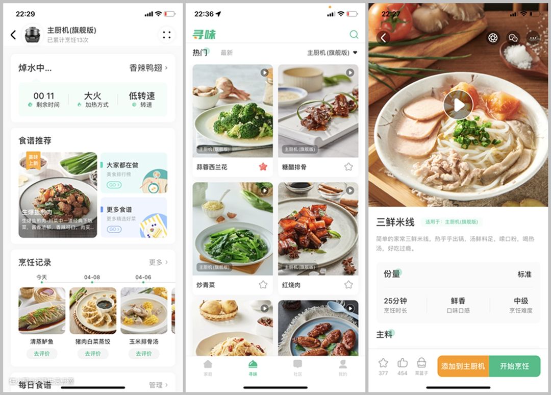 App中拥有海量菜谱,小C主厨机自带的只能算是冰山一角,App每日都会有新菜谱更新,而且可以方便地推送到小C主厨机上,然后你就可以在主厨机上跟着菜谱的智能指引做菜了,十分方便。