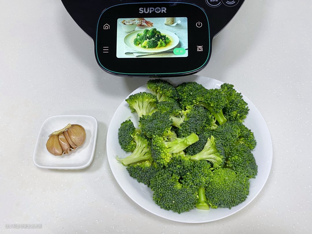用小C主厨机来炒一道简单的菜,蒜蓉西兰花大家应该经常吃吧,这道菜比较适合减肥的小伙伴。需要准备的食材很简单,一朵西兰花外加几瓣大蒜即可,把西兰花切成小朵,大蒜切成碎末。