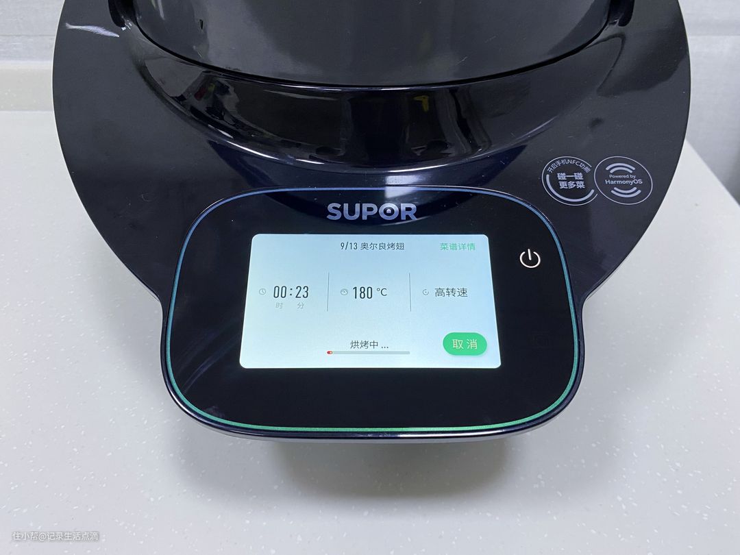 开始烘烤,菜谱引导中设定的加热程序是23分钟,温度为180℃,转速为高转速。