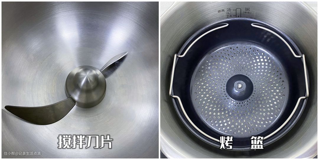 在内锅中间设置有旋转轴,可以用来安装搅拌刀片或烤篮。