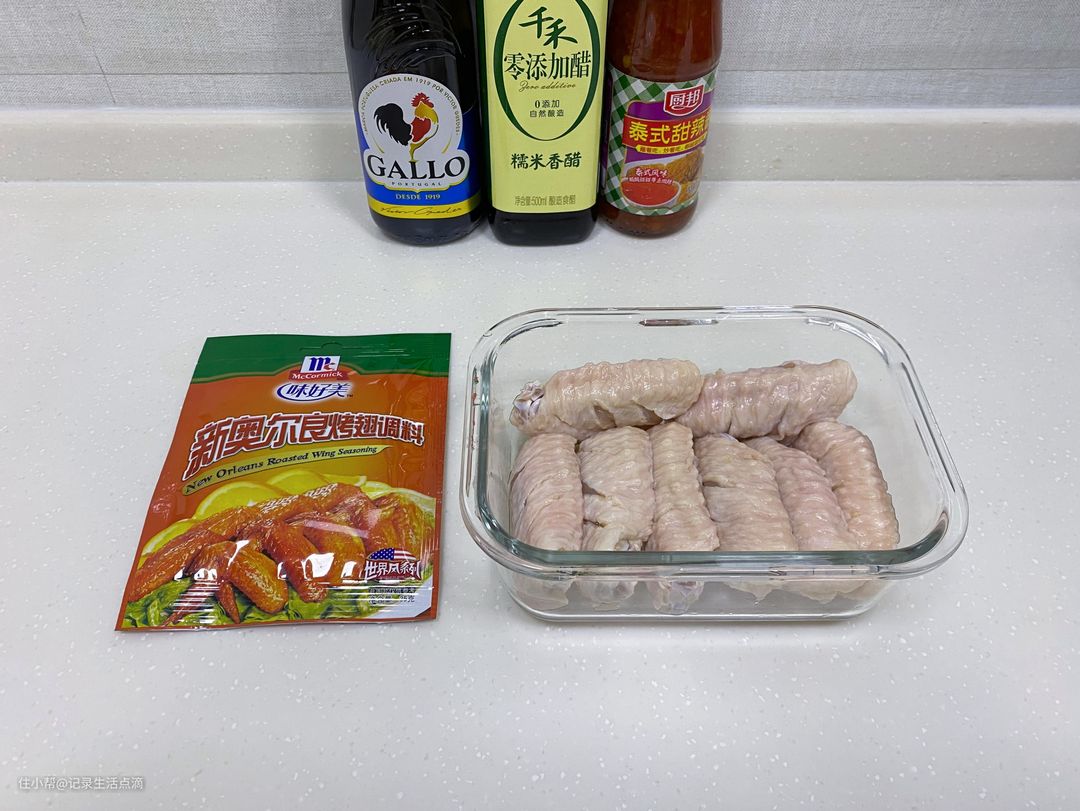 先来做个奥尔良烤翅,使用烘烤盖开启空气炸模式。这道美食的食材比较简单,主要是鸡中翅和奥尔良腌料,鸡中翅洗净后在正反面划上几刀,以便入味。