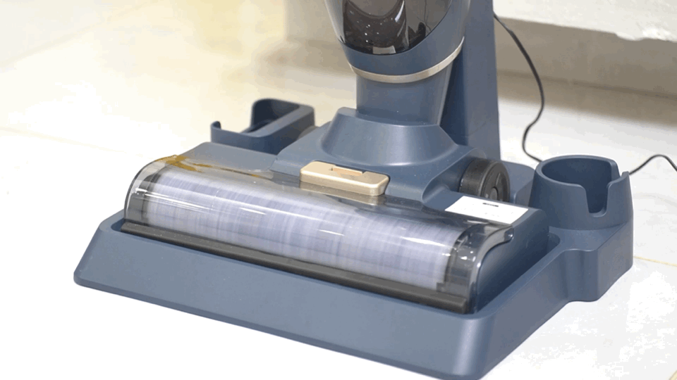 另外我还注意到,这款机器的底座对应滚刷的位置有凸起的小点设计,这样的设计能增加滚刷和底座之间的摩擦力,使得清洁滚刷的效果更好。