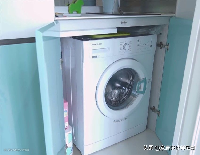 灶台的下面则是将洗衣机放置了进去,大大地增加了空间利用率,使用起来也非常方便。