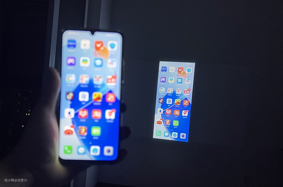 D9的投影可以采用多媒体接口进行有线连接,比如说机顶盒、电脑、U盘等等,也可以同屋无线进行投射,我用的我的手机进行测试,可以看到,能够将手机上的画面直接放大还原出来。用手机看电影,打游戏,然后通过投影仪投射出来,还有比这更沉浸的吗?