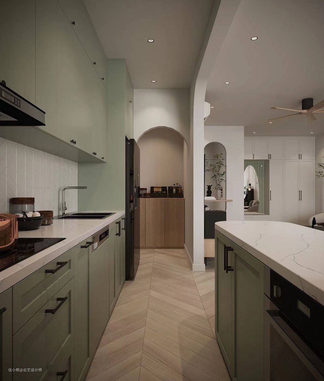◈装个这样绿色系的厨房,柔化空间轮廓,打造整体的柔和感,光是看着就很养眼了。
