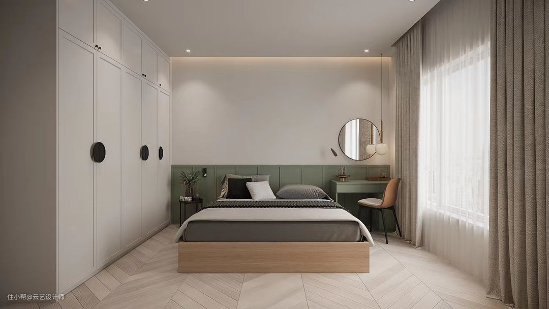 ◈卧室布局简单,双人床搭配厚实的床垫又软又舒服,没有过多复杂装饰,以暖色为主,浅色的家具更显自然清新,这就是法师浪漫与现代生活的完美融合~