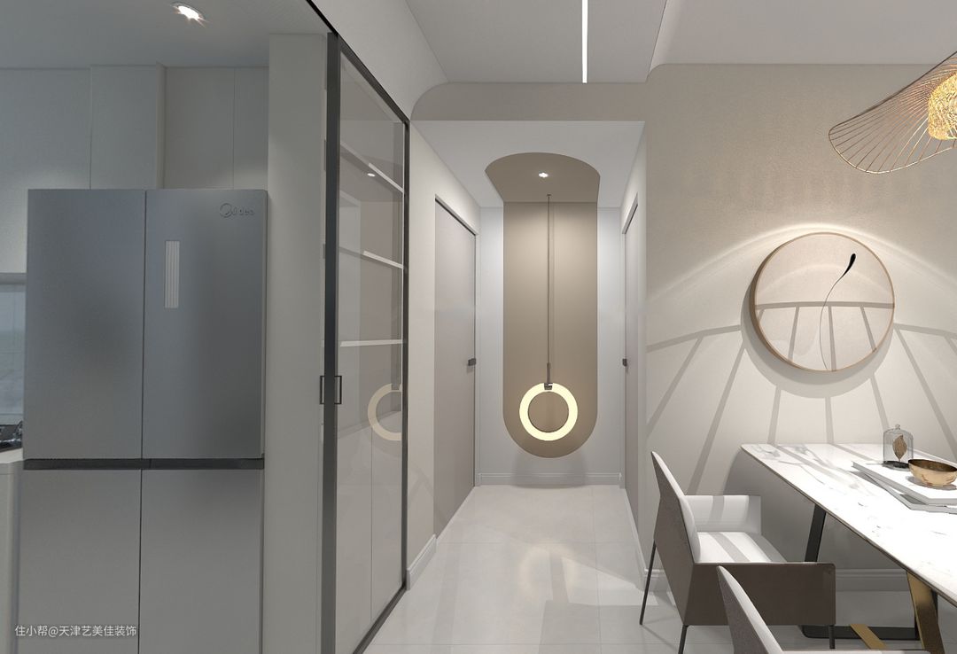 入户门正对的玄关位置,做了一个吊灯设计,让整个房间显得更加别致一些。