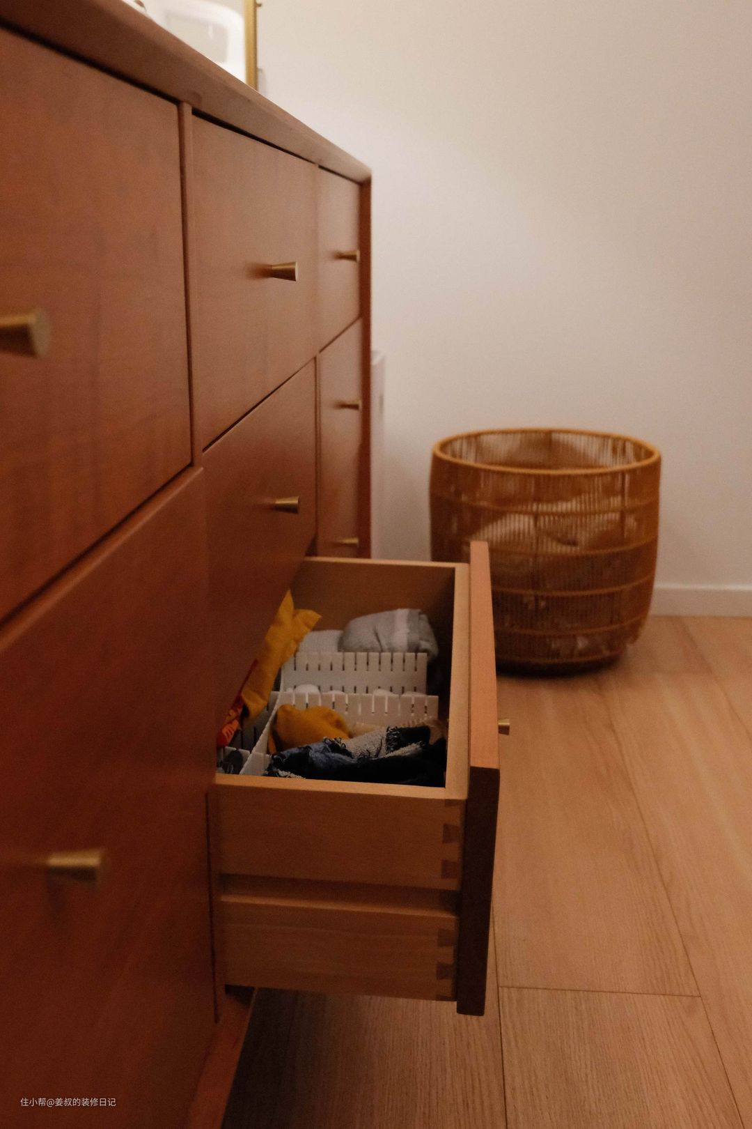 装修时,主卧的收纳改造是重中之重,以前主卧就靠衣柜和衣架做收纳,最终结果就是乱,特别是小件的衣物只能随手找个空塞进去,所以这次贴了心要买个九斗柜。