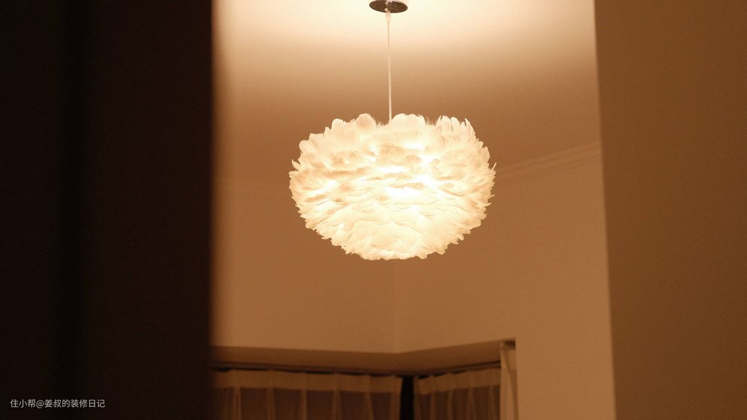 考虑到主卧对亮度要求不高,我还是装了被网上吐槽不少的羽毛灯,不仅好看,而且光照也符合我家的情况,在这里也给大家分享下我的真实感受。