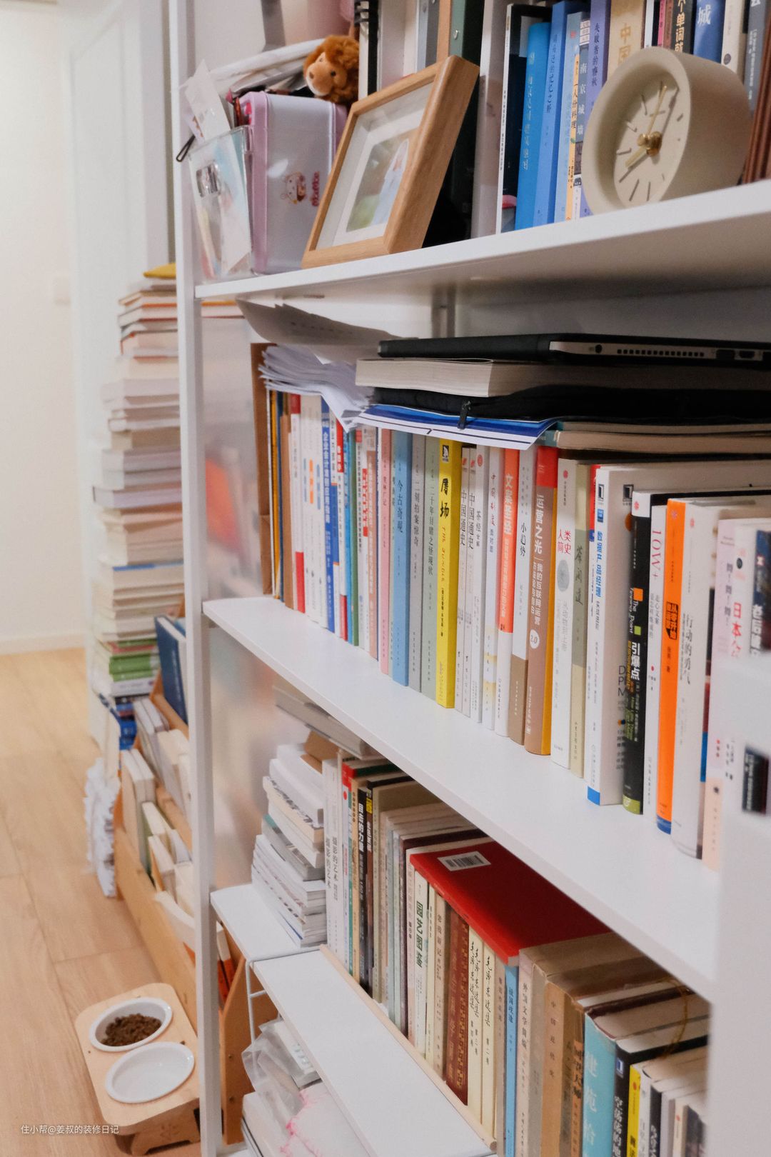 不过隔板架是开放式的,这意味着要勤快打扫卫生,不然很容易积灰,我现在每周会扫一次,好处就是拿取东西方便。另外两侧也是开放式的,放书就只能用书立挡住,我后来在网上定制了亚克力板,正好可以作为侧封,而且透明材质也很好看。