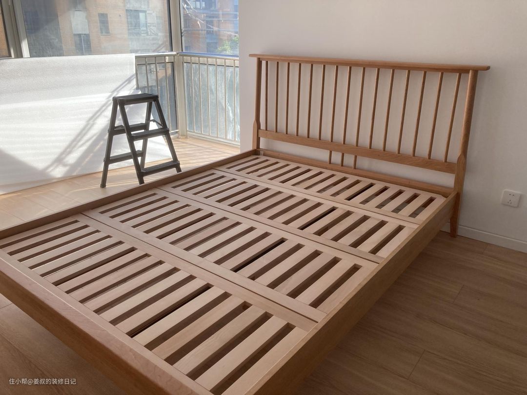 买床前,我就确定要带床腿、造型简单,不然放在卧室里会显得太笨重,最终看中了符合我审美的温莎床。这款温莎床是小半家搞活动跟其他家具一起凑单买的,2700块钱入手,包运输和安装。选了樱桃木色,不过随着时间氧化变深,我很喜欢这种深色,让你能感觉到这个家具像是有生命一样,感受到时间的流逝。