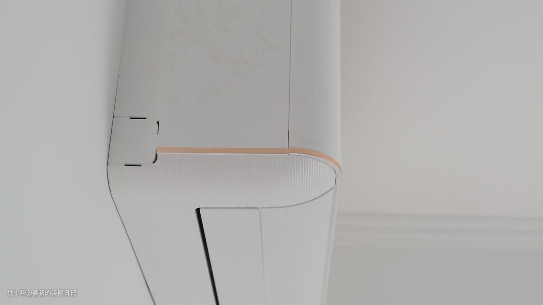 这款2匹的米家空调用鎏金边圆形设计,细节做得很到位,很有高级感,边缘处理非常圆润,特别是从侧面看过渡很自然,再配上鎏金边简约线条,非常优雅。