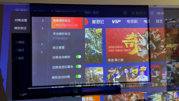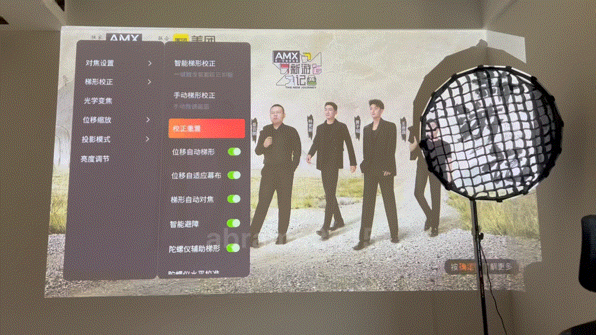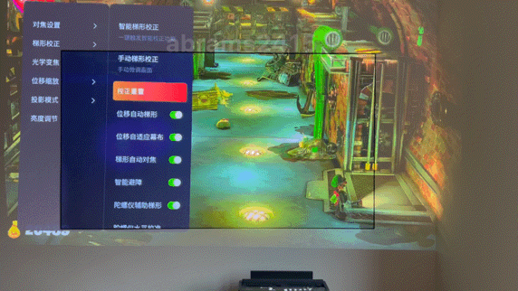▲在大白墙上试了下屏幕自动避障功能,体验很好。投影画面,完美避开右侧障碍物并调整到合适大小。