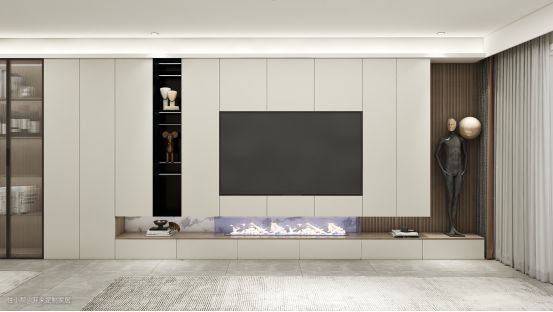 此次案例主要以简欧门型搭配隐形内扣拉手,增设镂空门元素,配色以雾白为主,局部搭配红棕、哑黑、奶咖、木纹等丰富了空间视觉的多元与层次体验,装修风格上由现代简约与欧式典雅碰撞出轻奢设计感。
