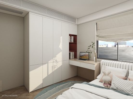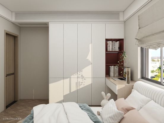 功能房也打造了衣柜与书柜一体,增设特色门型——