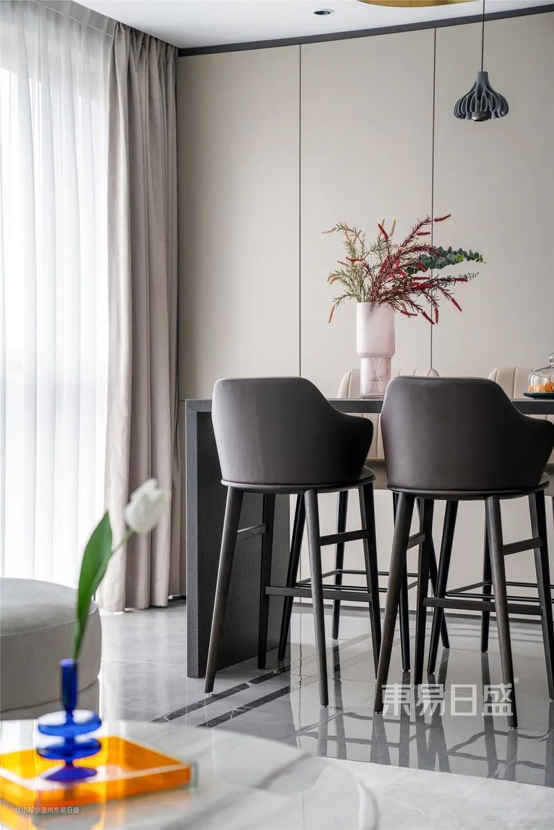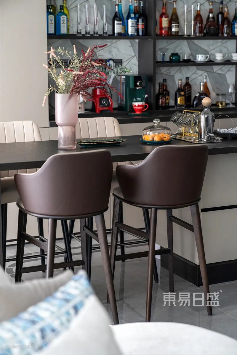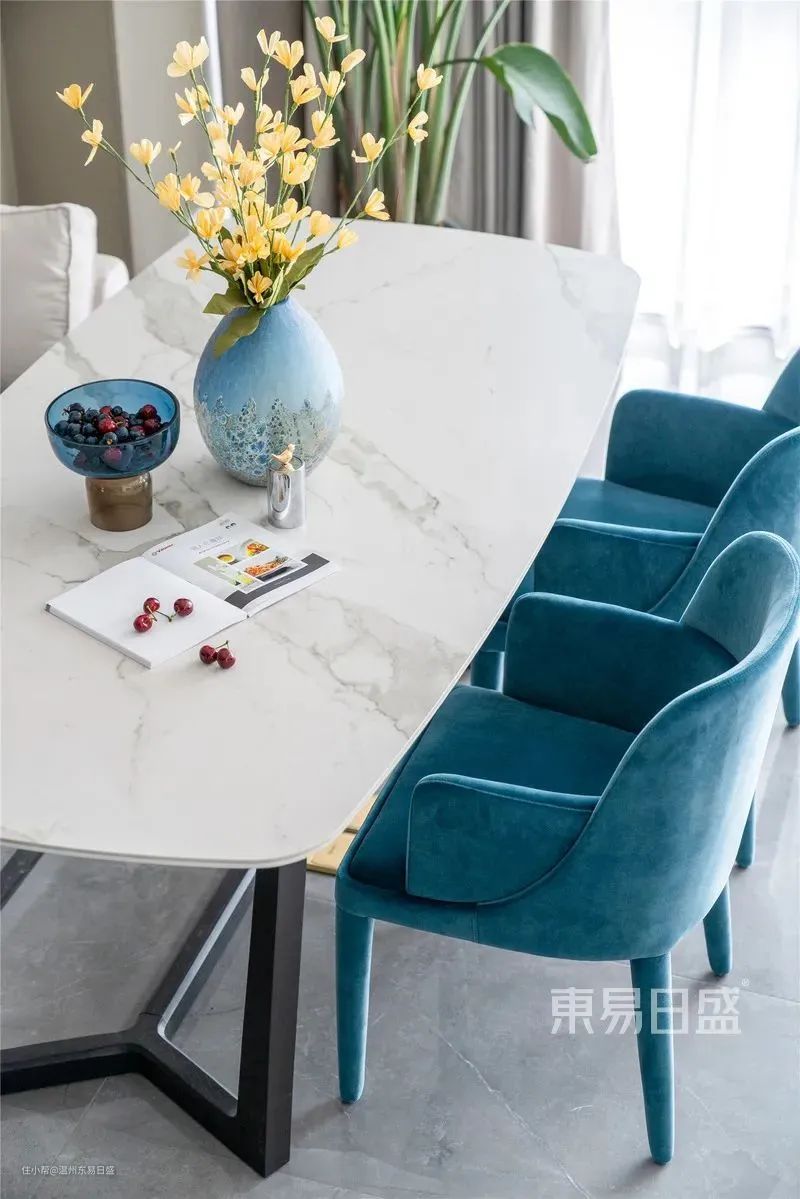 个性化的餐厅设计可以满足日常的用餐。蓝色搭配白色,整体风格上符合轻奢简约大气、不古板、有新颖的设计感。