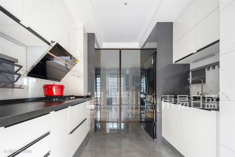 设计了一个大的封闭式厨房,让一家人享受下厨烹饪乐趣;料理区与洗涤区分开,整个动线更加开阔,功能布局使用起来更加合理的满足客户需求。
