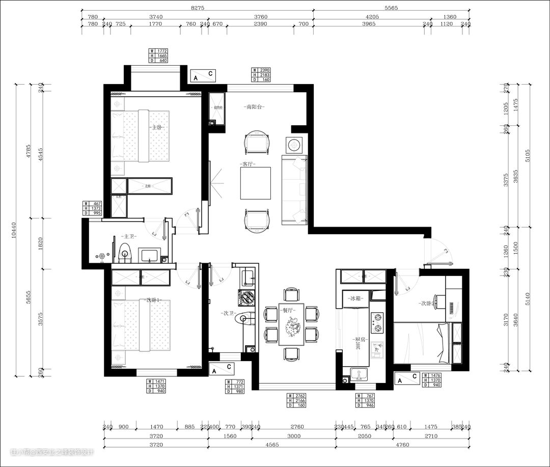 户型:三室两厅两卫一厨