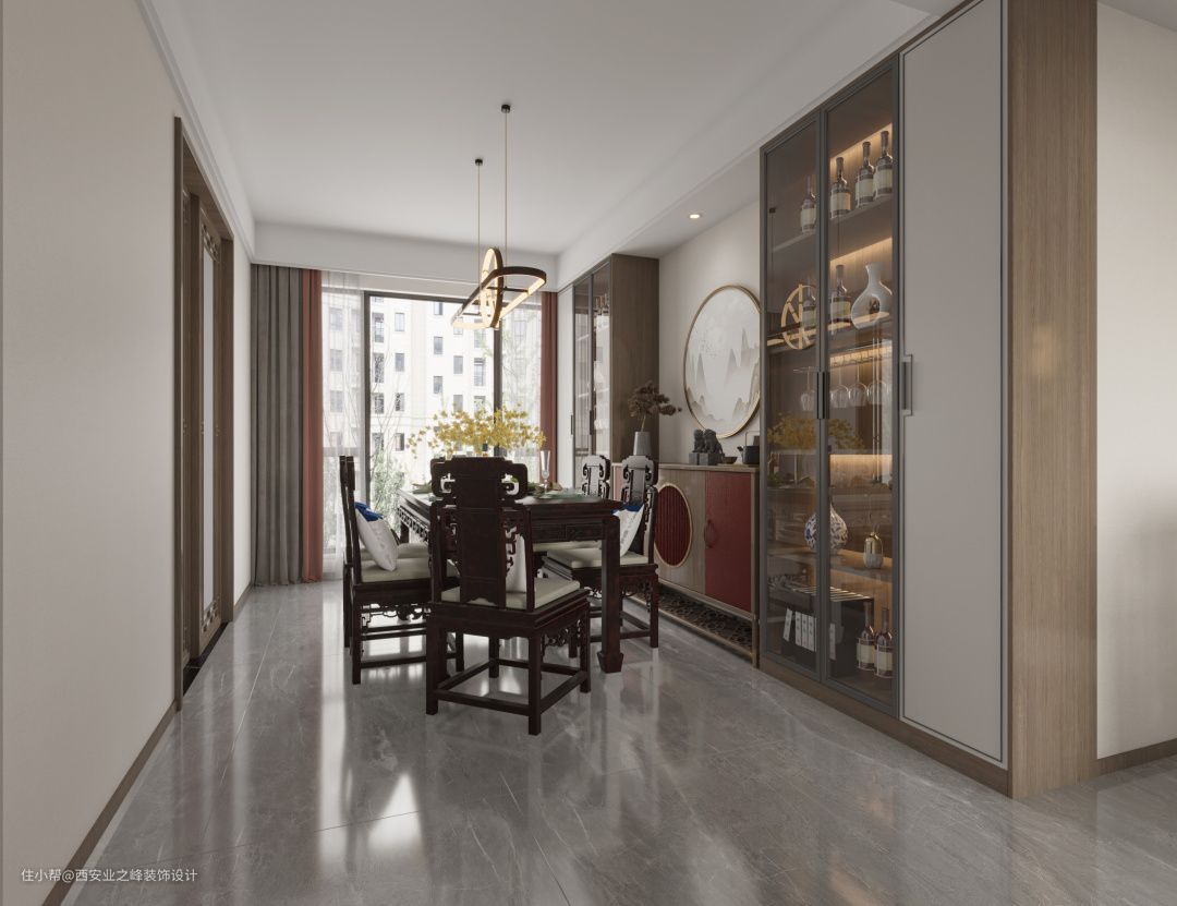 餐厅与客厅相互呼应,也是选择红木家具进行装饰,使“新中式”风格更加实用、更富现代感。